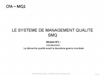 Title: LE SYSTEME DE MANAGEMENT QUALITE SMQ
