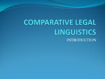 COMPARATIVE LEGAL LINGUISTICS PowerPoint PPT Presentation