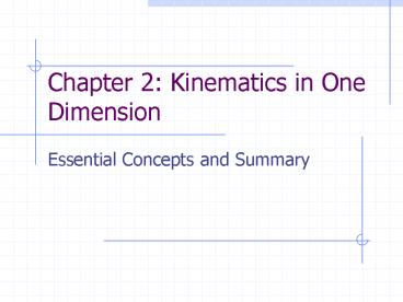 Chapter 2: Kinematics in One Dimension PowerPoint PPT Presentation