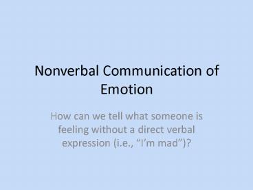 <Notice: Removed> Nonverbal Communication of Emotion PowerPoint PPT Presentation