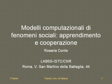 Title: Modelli computazionali di fenomeni sociali: apprendimento e cooperazione