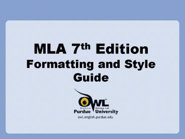<Notice: Removed> MLA 7th Edition Formatting and Style Guide PowerPoint PPT Presentation