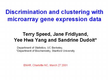 <Notice: Removed> Discrimination and clustering with microarray gene expression data PowerPoint PPT Presentation