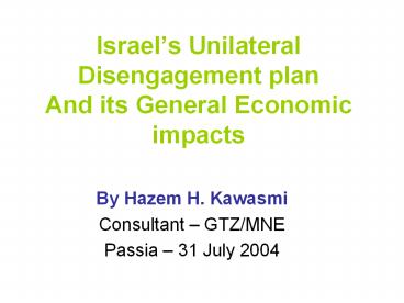 1Israels Unilateral Disengagement plan And its