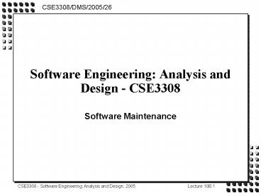 <Notice: Removed> Software Engineering: Analysis and Design - CSE3308 PowerPoint PPT Presentation