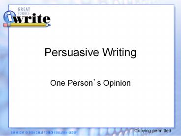 <Notice: Removed> Persuasive Writing PowerPoint PPT Presentation