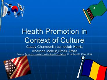 <Notice: Removed> Health Promotion in Context of Culture Casey Chamberlin,Jameelah Harris Andreea Molcut,Umair Athar Source: Promoting Health in Multicultural Populations. R. Huff and M. Kline. 1999 PowerPoint PPT Presentation