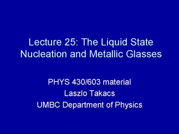 Title: Lecture 25: The Liquid State Nucleation and Metallic Glasses