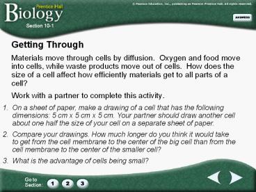 - Materials move through cells by diffusion.