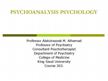 <Notice: Removed> PSYCHOANALYSIS PSYCHOLOGY PowerPoint PPT Presentation