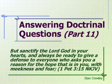 <Notice: Removed> Answering Doctrinal Questions (Part 11) PowerPoint PPT Presentation