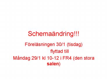 - Måndag 29/1 kl 10-12 i FR4 (den stora salen)