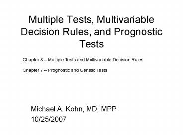 Title: Multiple Tests, Multivariable Decision Rules, and Prognostic Tests