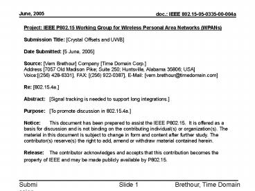Crystal Offsets and UWB Date Submitted 5