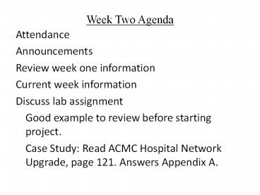 Week Two Agenda PowerPoint PPT Presentation