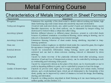 <Notice: Removed> Metal Forming Course PowerPoint PPT Presentation