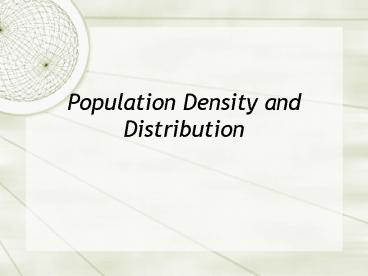 <Notice: Removed> Population Density and Distribution PowerPoint PPT Presentation