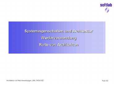 <Notice: Removed> Systemeigenschaften und Architektur Wiederverwendung Rolle von Architekten PowerPoint PPT Presentation