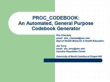 <Notice: Removed> PROC_CODEBOOK: An Automated, General Purpose Codebook Generator PowerPoint PPT Presentation