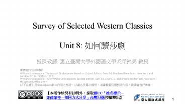 <Notice: Removed> Survey of Selected Western Classics Unit 8: ????? PowerPoint PPT Presentation