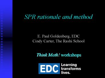 <Notice: Removed> SPR rationale and method PowerPoint PPT Presentation