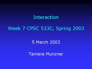 Title: Interaction Week 7 CPSC 533C, Spring 2003