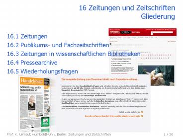 <Notice: Removed> 16 Zeitungen und Zeitschriften Gliederung PowerPoint PPT Presentation