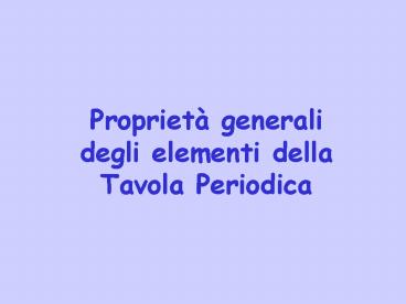 1Proprietà generali degli elementi della Tavola