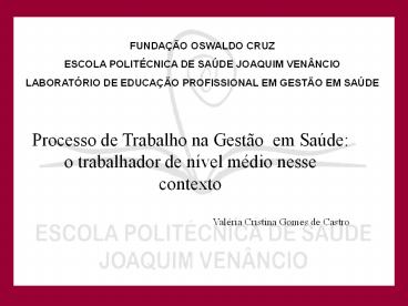 1FUNDAÇÃO OSWALDO CRUZ ESCOLA POLITÉCNICA DE SAÚDE