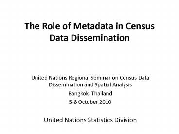 The role of metadata in censuses PowerPoint PPT Presentation