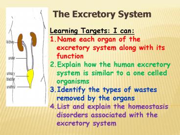 • Name each organ of the excretory system along
