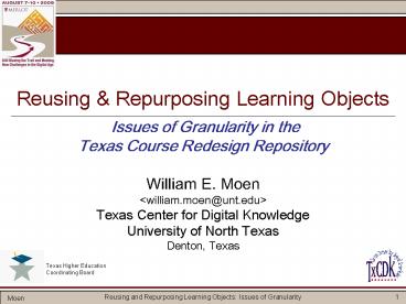 learning objects. Doorten, M., et al. - THECB LOR Project http//thecblor.unt.edu
