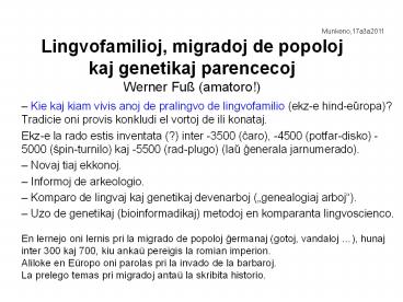 <Notice: Removed> Lingvofamilioj, migradoj de popoloj kaj genetikaj parencecoj Werner Fu PowerPoint PPT Presentation