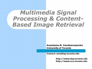 <Notice: Removed> Multimedia Signal Processing PowerPoint PPT Presentation