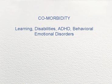 <Notice: Removed> CO-MORBIDITY Learning, Disabilities, ADHD, Behavioral Emotional Disorders PowerPoint PPT Presentation