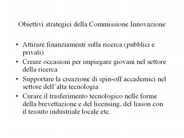 operativi per attuare la strategia delineata. - La Commissione Innovazione ha operato al fine di