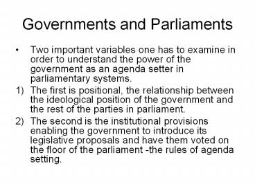 Title: Governments and Parliaments
