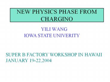 <Notice: Removed> NEW PHYSICS PHASE FROM CHARGINO PowerPoint PPT Presentation