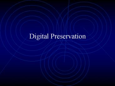 content needs to be managed and protected - Digital Preservation Projects are initiated