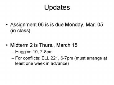 - Assignment 05 is is due Monday, Mar. 05 (in