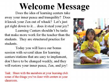 <Notice: Removed> Welcome Message PowerPoint PPT Presentation