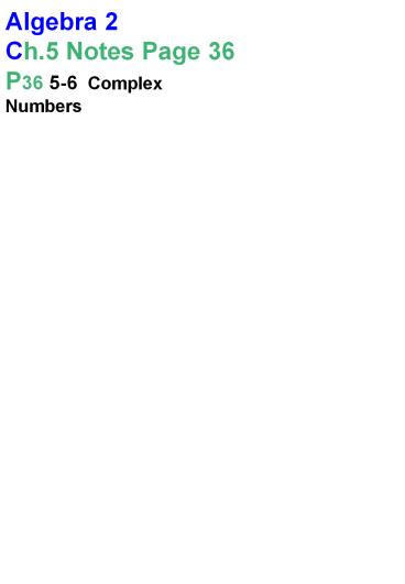 Algebra 2 Ch.5 Notes Page 36 P36 5-6 Complex