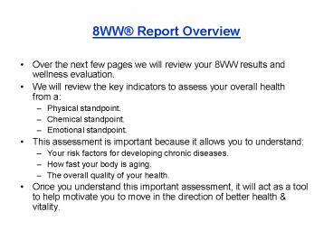 • Over the next few pages we will review your 8WW