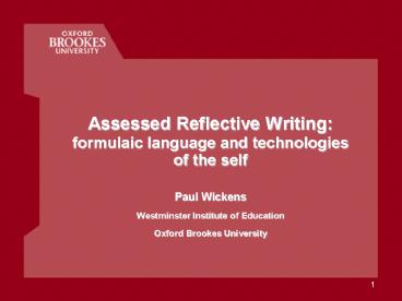 <Notice: Removed> Assessed Reflective Writing: formulaic language and technologies of the self Paul Wickens Westminster Institute of Education Oxford Brookes University PowerPoint PPT Presentation