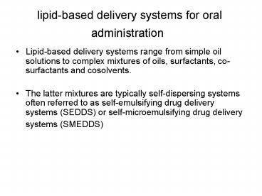 <Notice: Removed> lipid-based delivery systems for oral administration PowerPoint PPT Presentation