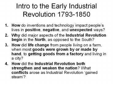 Title: Intro to the Early Industrial Revolution 1793-1850