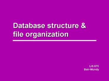 <Notice: Removed> Database structure PowerPoint PPT Presentation