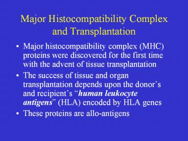 <Notice: Removed> Major Histocompatibility Complex and Transplantation PowerPoint PPT Presentation