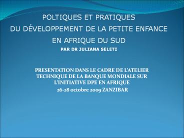 PETITE ENFANCE EN AFRIQUE DU SUD PAR DR JULIANA