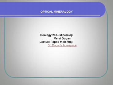 Geology 265 Mineraloji Meral Dogan Lecture